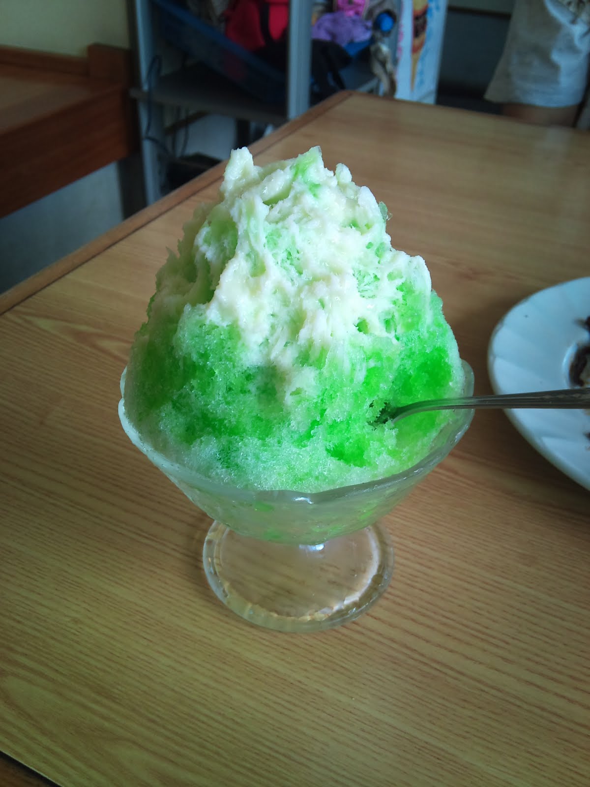 これがそのかき氷です。ミルク(オプション)がいっぱいかかっていて、ちょっとしつこかったです。